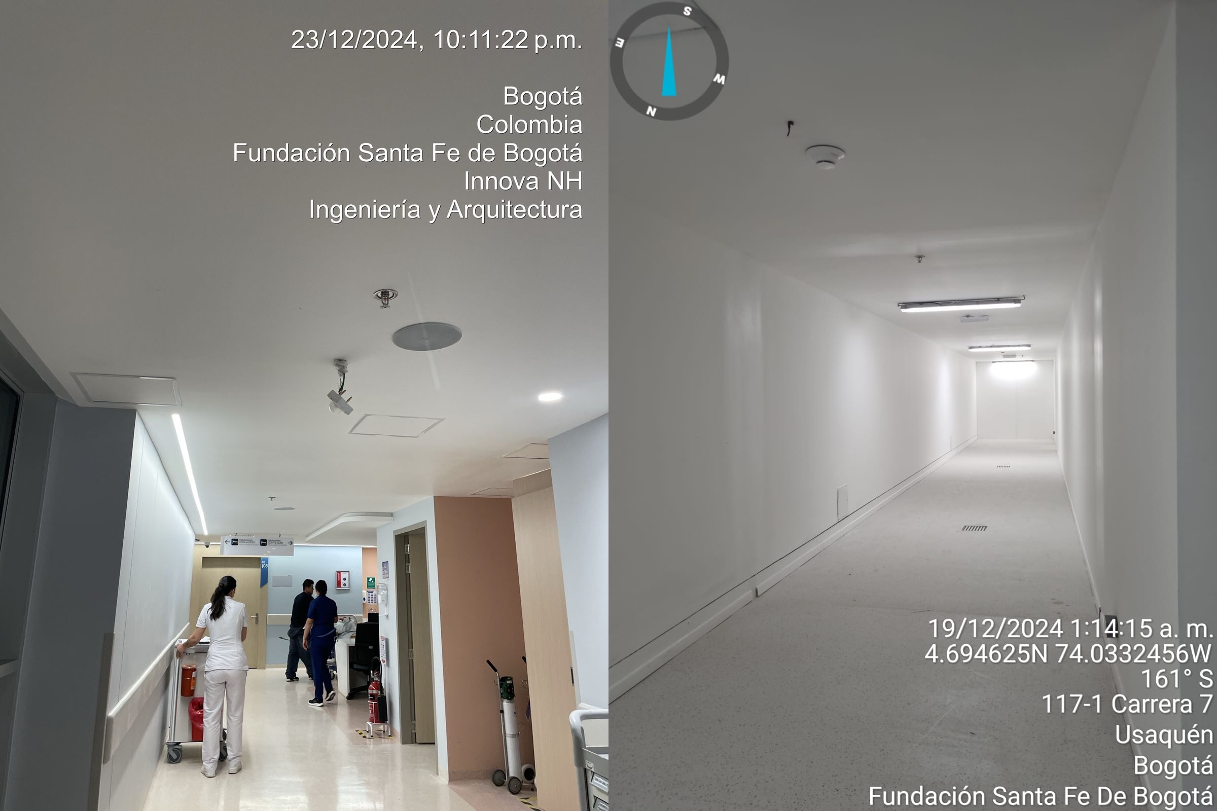 Resanamos y pintamos muros y cielo rasos de pasillos, habitaciones, centrales de enfermería, áreas internas y áreas de atención al paciente en la Fundación Santa Fé de Bogotá. La pintura acrílica de alta asepsia es la mejor alternativa para hospitales, consultorios, lavanderías y farmacias, son zonas de alto flujo de visitas y esta pintura contiene bajo olor y permite que el lugar que se pintó quede en uso en el menor tiempo posible.
